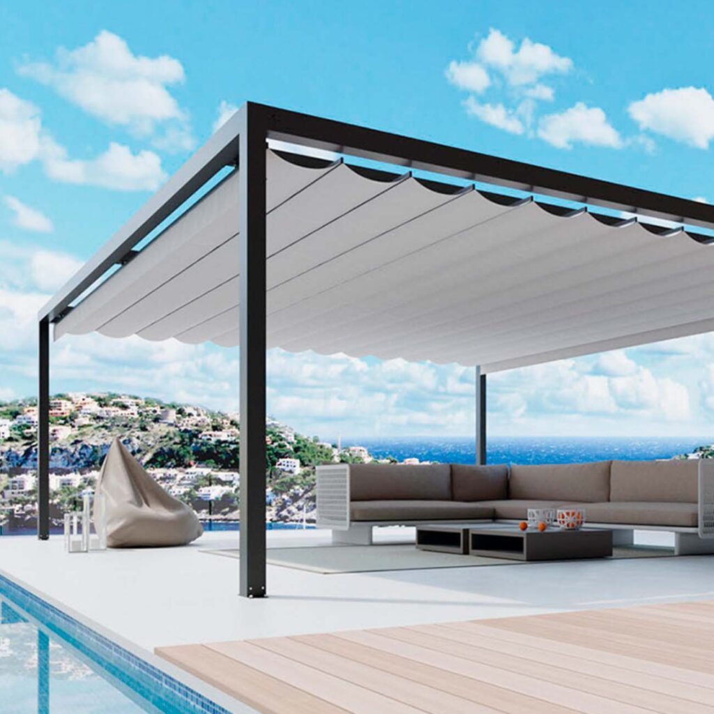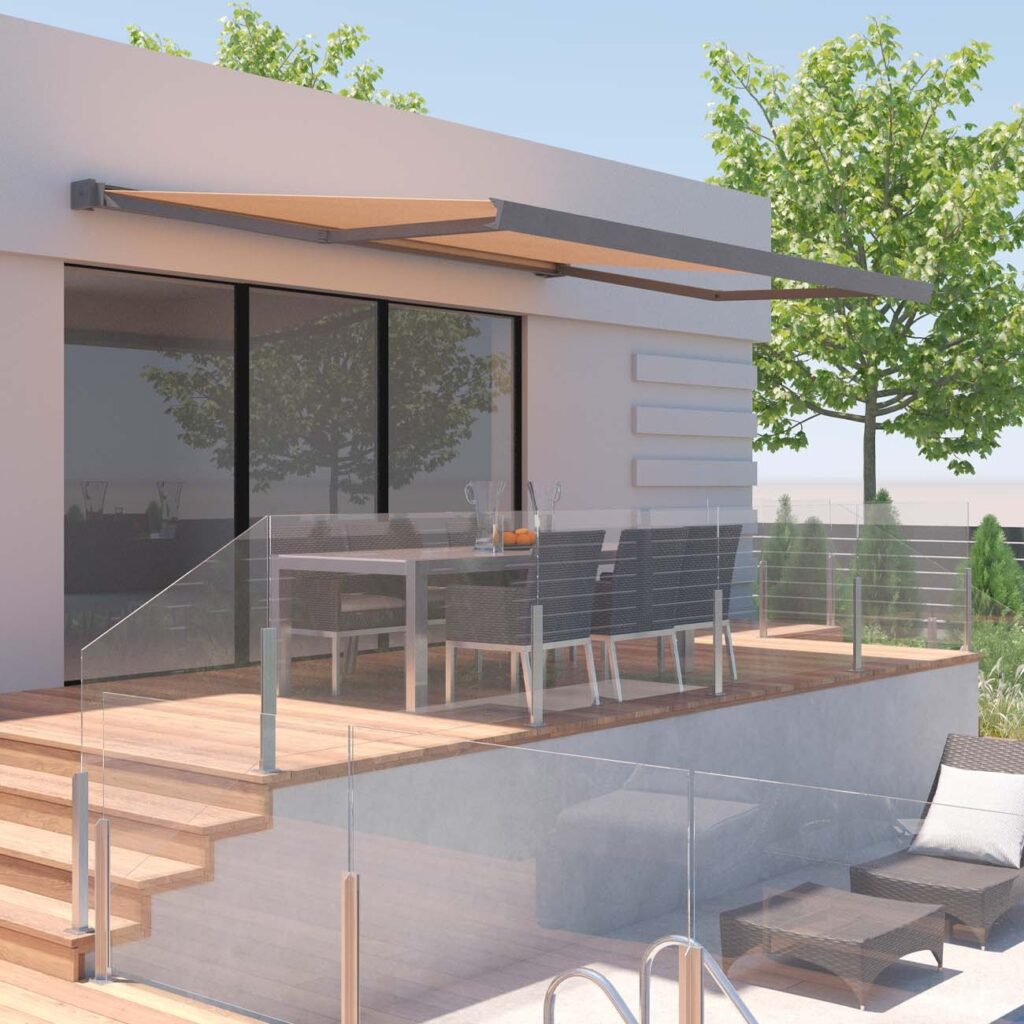 Toldo con cofre compacto y diseño moderno para exteriores. El Cofre Kset Q25 es un sistema...